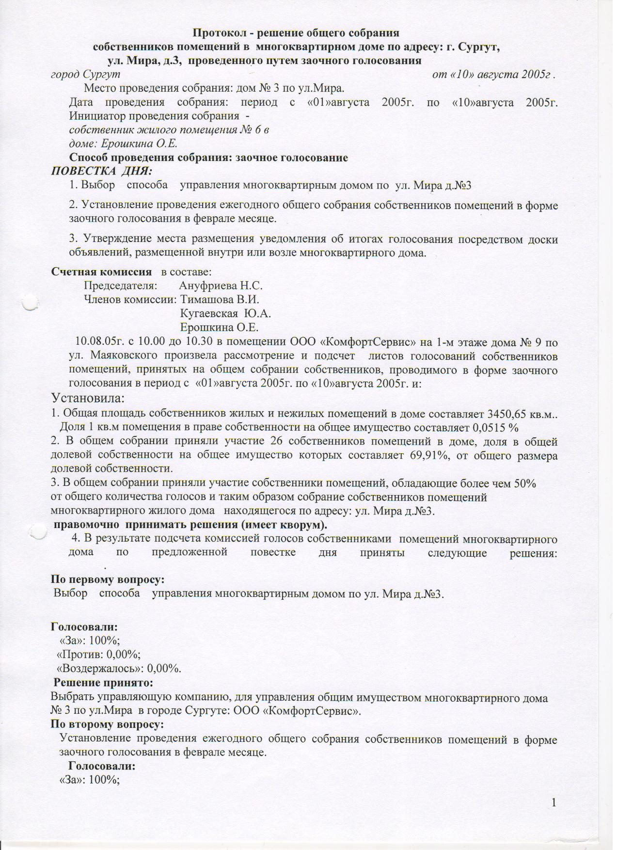 Протокол общего собрания собственника